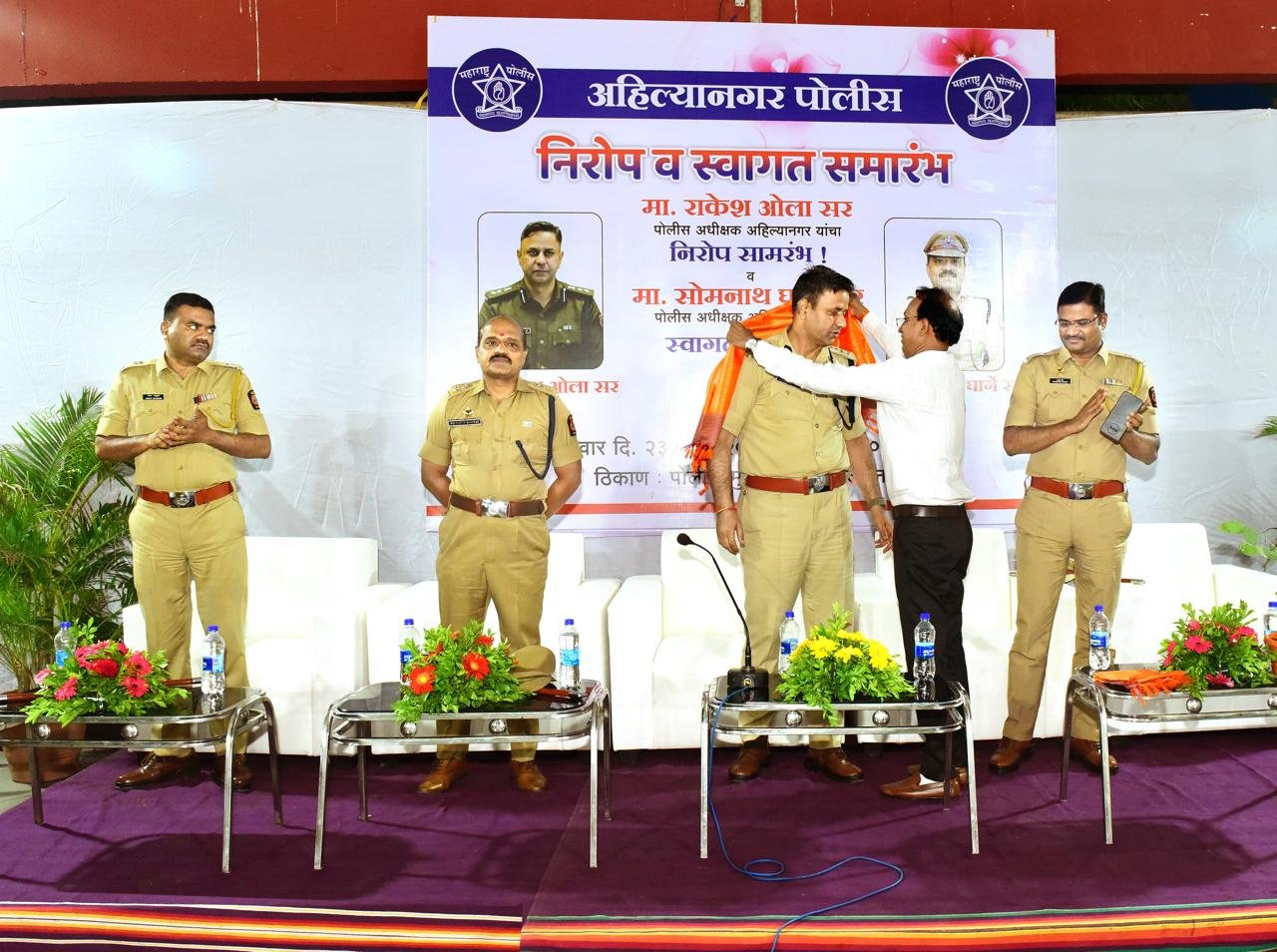 *नूतन जिल्हा पोलीस अधीक्षक सोमनाथ घार्गे यांनी पदभार स्वीकारल्यानंतर त्यांचा डॉ. शिंदे यांनी सत्कार केला. त्यावेळी ते बोलत होते. याप्रसंगी पोलीस अधीक्षक राकेश ओला, अपर पोलीस अधीक्षक (नगर शहर) प्रशांत खैरे, अपर पोलीस अधीक्षक (श्रीरामपूर) वैभव कलुभर्मे, पोलीस उपअधीक्षक अमोल भारती व सर्व पोलीस अधिकारी पोलीस मुख्यालय, अहिल्यानगर येथे उपस्थित होते.*