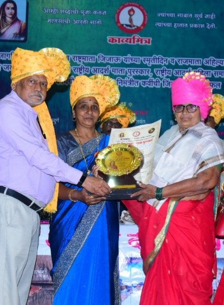 कुसुमबाई देवरे यांना राष्ट्रीय आदर्श माता पुरस्कार... काव्य मित्र संस्था यांच्या वतीने राष्ट्रमाता माता जिजाऊ यांच्या स्मृतिदिन व राजमाता अहिल्याबाई...