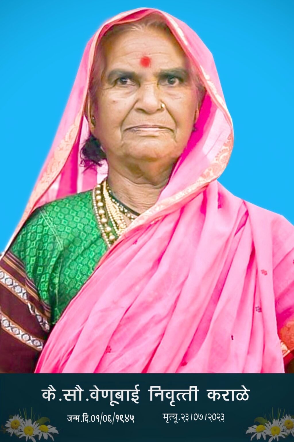 *कै. सौ.वेणूबाई निवृत्ती कराळे या विविध कार्यकारी सेवा सोसायटी चे सेवानिवृत्त सचिव श्री.निवृत्ती तुकाराम कराळे यांच्या धर्मपत्नी यांना जाऊन आज...